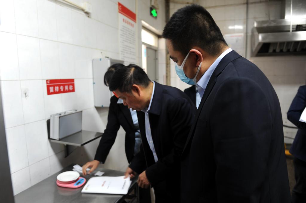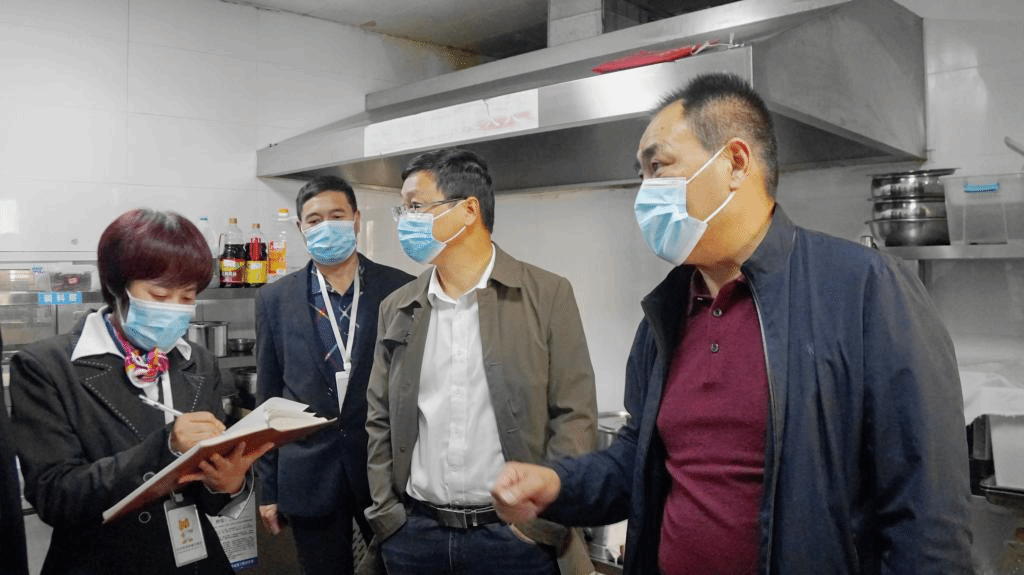 在学生食堂,检查组重点检查了各食堂是否按照《企业落实食品安全主体责任监督管理规定》要求,完善各类食品安全管理制度并建立健全“日管控、周排查、月调度”工作机制。检查组一行依次来到仓库、加工区、烹调间、洗消间、售饭区和用餐区域,从进货渠道、清洗、熟制烹饪到销售、回收、消毒的各个环节,都进行了详细的检查和询问,并提出了指导性意见。