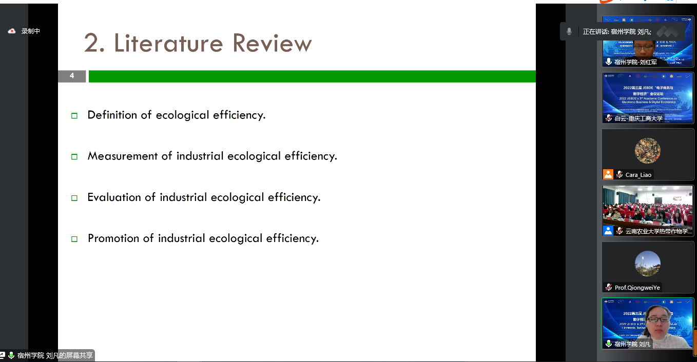 会议中,我院商学院刘凡老师做了题为《数据驱动的工业生态效率评价及提升对策研究-来自中国30个省市》的精彩报告,从工业生态效率的内涵、测度方法等方面对工业生态效率评价及提升对策进行了翔实的论证与分析,刘红军教授对刘凡老师的报告进行了点评与总结。