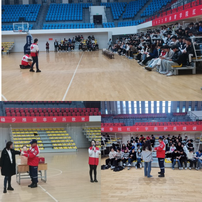 为进一步推进平安校园建设,普及急救知识和技能,提高我院师生面对突发事件的应急救援能力和自我防护意识,11月12日,我院邀请市红十字会来院开展红十字应急救护员职业培训活动。此次培训活动第一站在体育学院举办,体育学院师生学习热情高昂、报名积极踊跃,师生共计500余人参加培训。