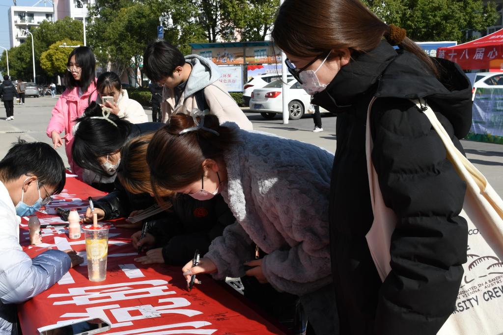 12月4日是第九个国家宪法日,11月28日至12月4日是“宪法宣传周”。为深入学习贯彻党的二十大精神,全面贯彻落实习近平法治思想,推动学习宣传宪法,弘扬宪法精神,维护宪法权威,我院于12月2日在一食堂门口开展以“学习宣传贯彻党的二十大精神,自觉维护宪法权威”为主题的签名活动。院党委书记汪刘送,党委委员、纪委书记、监察专员王俊,党委委员、副院长杨维志出席活动,宣传部部长李真、办公室主任岳尧、学工部部长李月云、保卫处副处长张晓聪,广大师生到场参加活动。