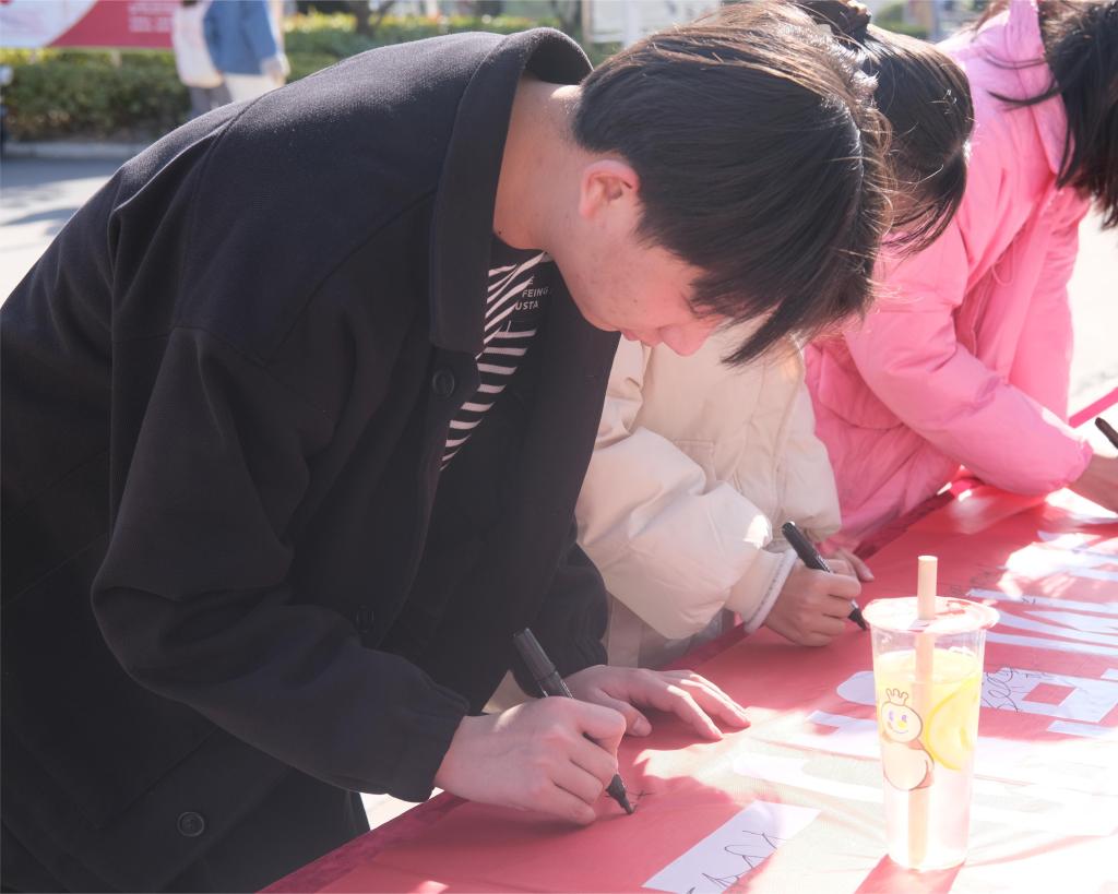 青年志愿者为大家讲述了宪法的地位与权威性,并通过宣读部分宪法条例、进行主题宣讲的方式,让广大师生了解到宪法赋予公民自身的权利与义务。在青年志愿者的引导组织下,汪刘送、王俊、杨维志、李真、岳尧、李月云、张晓聪纷纷在印有“宿州学院‘学习宣传贯彻党的二十大精神,自觉维护宪法权威’主题签名活动”字样的条幅上签下自己的名字,表达了对深入学习宣传贯彻习近平法治思想,大力弘扬宪法精神的决心。师生们纷纷表示:“宪法是我国的根本大法,与我们每一个家庭、每一个个体,都有千丝万缕着关系。这次活动的举行,让我们能够去学习宪法,了解宪法知识,对我们自身素质的提高也有很大的帮助。”