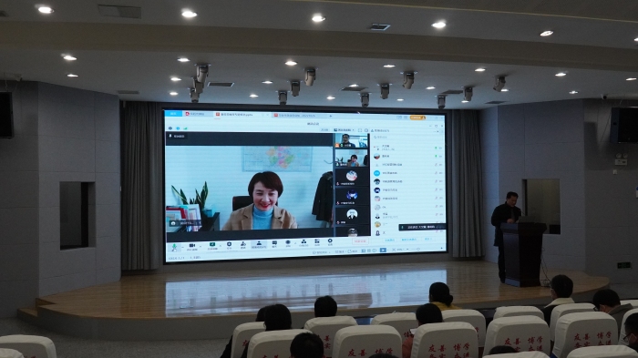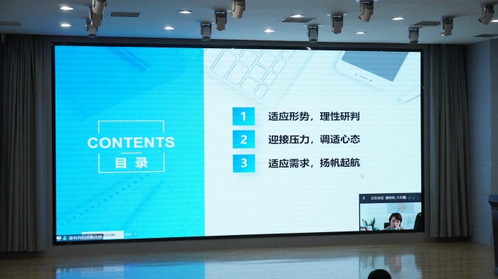 报告以线上腾讯会议形式进行,各二级学院党委副书记、学生事务管理科科长、毕业班辅导员、招生就业处工作人员以及部分学生代表在工科楼一楼大学生就业指导服务中心线下收看;2023届毕业生通过腾讯会议在线收看,报告由招生就业处处长杨刚主持。