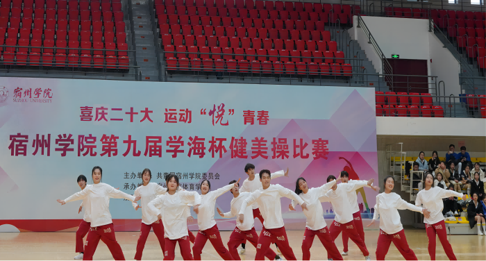 11月30日,由团委主办,体育学院承办的宿州学院第九届“学海杯”大学生健美操比赛在新体育馆二楼篮球馆举行。团委书记凌峰、体育学院党委书记李高、院长白明以及比赛裁判组的老师们出席,本次比赛共有19支队伍进行角逐。