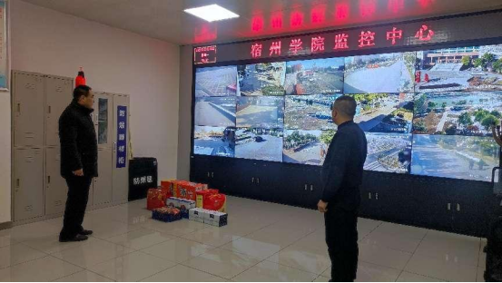 李亮一行先后来到学校监控中心、水电中心、网络与信息技术中心、学校总值班室、学生公寓、大门门卫等场所,与值班值守工作人员亲切交谈,询问了解他们的工作生活情况,对他们在节日期间坚守岗位表示衷心感谢,向他们及家人送上新春的美好祝福,叮嘱他们在做好工作的同时注重防寒保暖、劳逸结合,勉励他们继续发扬忠于职守、甘于奉献的精神,以高度负责的工作态度和良好的精神状态,扎实做好节日期间值班值守、安全保卫和后勤保障等各项工作,确保校园安全稳定,确保广大师生度过一个祥和温暖的春节和平安快乐的假期。