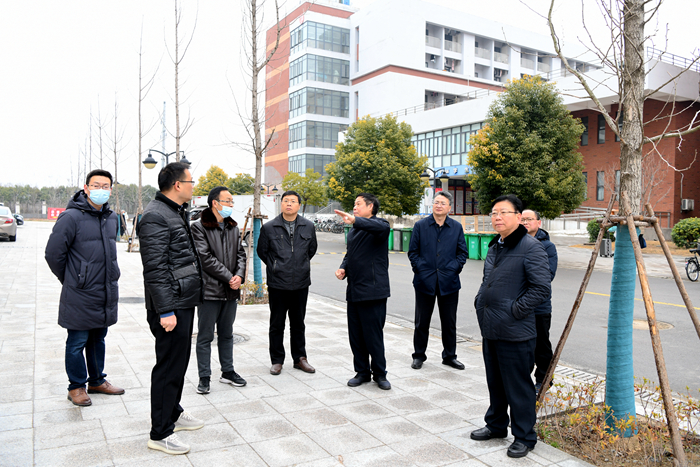 为扎实做好学院新学期开学各项准备工作,确保学院顺利开学和师生健康安全,2月11日上午,院党委书记汪刘送,党委副书记、院长李福华,党委委员、纪委书记、监察专员王俊,党委委员、副院长杨维志深入一线走访检查,全面了解新学期开学各项准备工作。办公室、教务处、保卫处、后勤与基建管理处等相关职能部门负责人陪同检查。