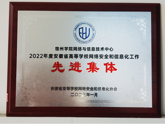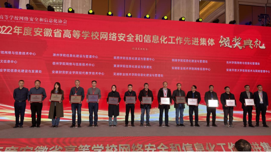 3月4日,2022年度安徽省高等学校网络安全和信息化工作先进集体评选举行颁奖仪式,我校荣获2022年度安徽省高等学校网络安全和信息化工作“先进集体”称号。