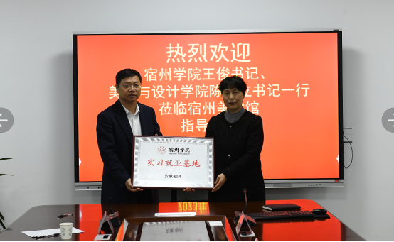 为学习贯彻党的二十大精神,落实党中央“稳就业、保就业”的决策部署和习近平总书记关于做好高校毕业生工作的重要指导精神,进一步加强校企、校地合作、推进产业学院建设、推动高水平大学建设,2023年3月22日,宿州学院党委委员、纪委书记、监察专员王俊带队深入宿州市美术馆开展校企、校地洽谈合作签约挂牌仪式。美术与设计学院党委书记陈述立,党委副书记、纪委书记边洪强、党政办公室主任马阳阳、书法教研室主任秦琴陪同参加。