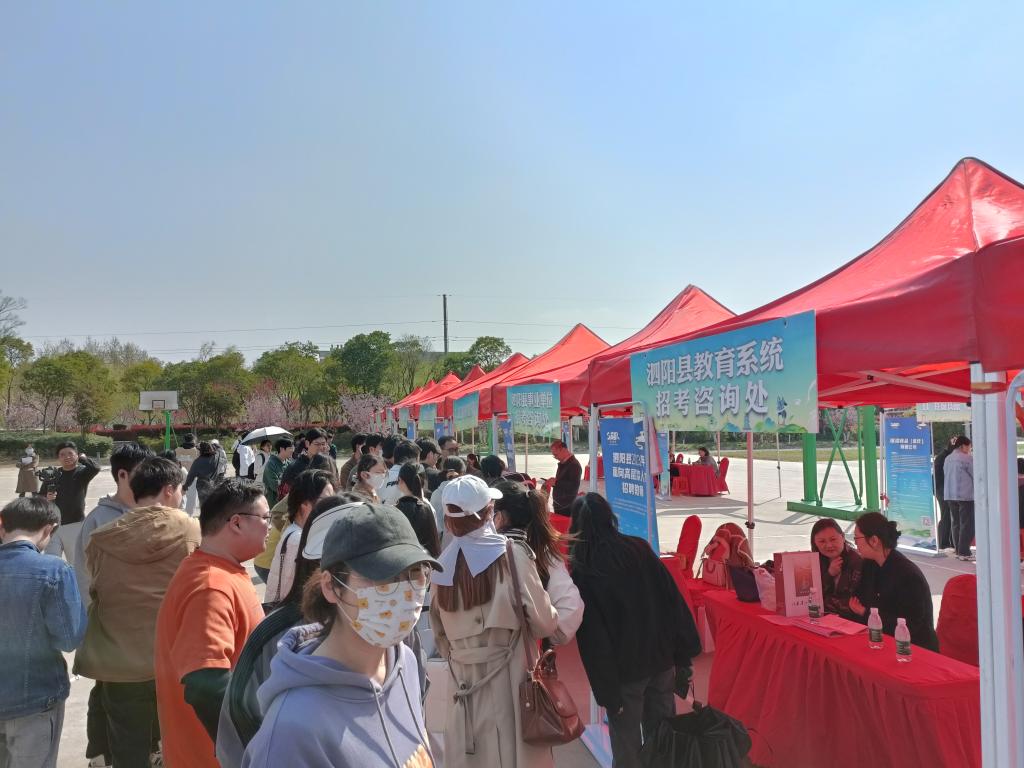 泗阳县位于江苏省北部,东临周恩来总理故乡淮安市,西接项羽故里宿迁市,南濒全国第四大淡水湖洪泽湖,京杭大运河、徐盐高速、新长铁路、宿淮铁路穿境而过,属长三角经济区和淮海经济区,有“泗水古都、美酒之都、林海绿都”的美誉。本场招聘会由泗阳县委组织部、宿州学院主办,泗阳县人力资源和社会保障局、宿州学院招生就业处承办,组织了高端纺织、高端家居、电子信息、食品加工、食用菌研发生产、机械制造等多个产业链共32家优质企业参会,泗阳教育系统及53家事业单位参与招聘。32家企业主要招聘会计学、机械化、电子类、电气类、化学类、市场营销、食品类、计算机、国际贸易等专业人才,提供就业岗位713个。800余名毕业生参加此次招聘会,线上线下投递简历445份,202名毕业生达成初步就业意向。