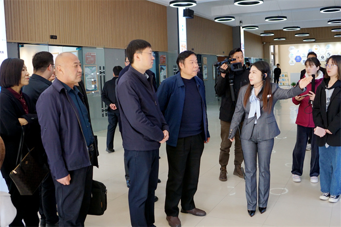 孙鹏一行首先参观了宿州学院大学生创业园创客空间,听取了创业园创客空间相关情况介绍,观看了创业园孵化项目《薪火领创——做有温度的思政教育实践教学引领者》《安徽省洁壤环保科技有限公司——基于工业废渣的土壤修复剂研发及产业化》的现场路演。