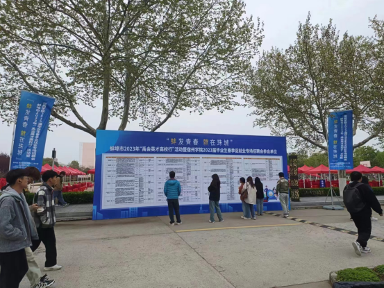 为扎实深入开展2023届高校毕业生春季促就业攻坚行动,把握“金三银四”就业黄金期,更好地为用人单位和毕业生搭建双向选择的平台,促进毕业生高质量充分就业,4月6日下午,我院在教育园区校区成功举办“春季促就业 万企进校园”系列活动第六期——徐州市·蚌埠市·南京市高淳区2023年春季宿州学院专场招聘会。