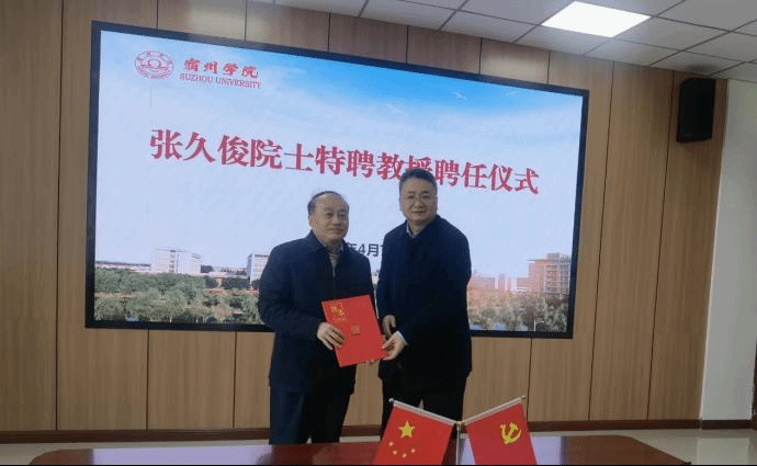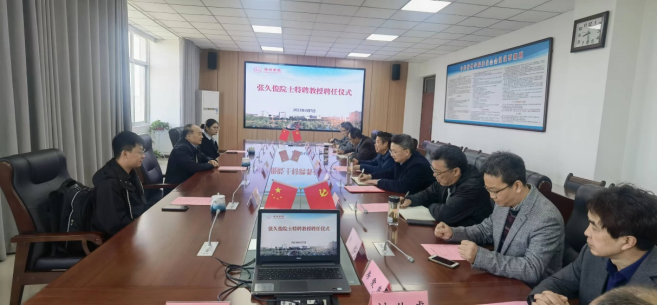 张久俊院士对宿州学院的信任和聘任表示衷心的感谢,他介绍了自己的学术发展经历,表示十分期待与我院的合作,希望在接下来的合作中充分发挥多年积累的科研工作经验,为学校学科建设、科研团队建设、青年人才培养等作出贡献,助力学校高质量发展。