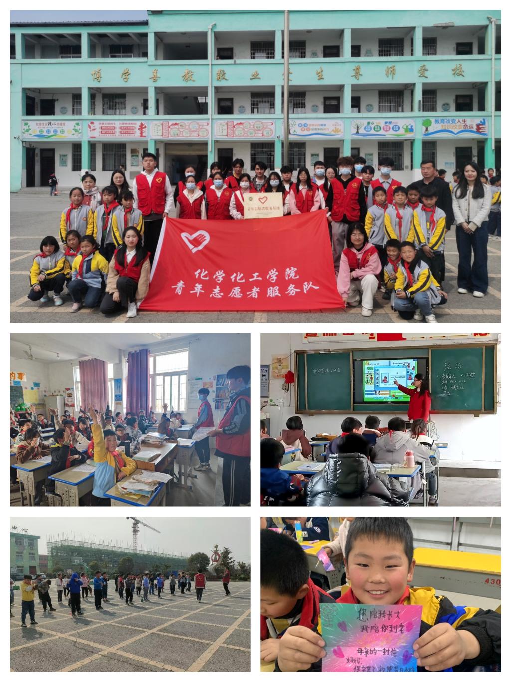 关心儿童成长,播撒爱的希望。化学化工学院、机电学院、文学与传媒学院、外国语学院等志愿服务队分别赴大张小学、天地阳光学校等支教,并共同建立了大学生志愿服务基地。美术课上,志愿者引导学生发现图画中的美,提高学生对美的认知。英语课上,教小学生们朗读英语单词,掌握正确发音。体育课上,带领小学生课前热身,游戏环节。趣味课上,志愿者带领小朋友进行粘土制作、卡纸折叠等;音乐课上,结合雷锋精神,带领学生用歌声去表达对雷锋叔叔无限的敬佩。