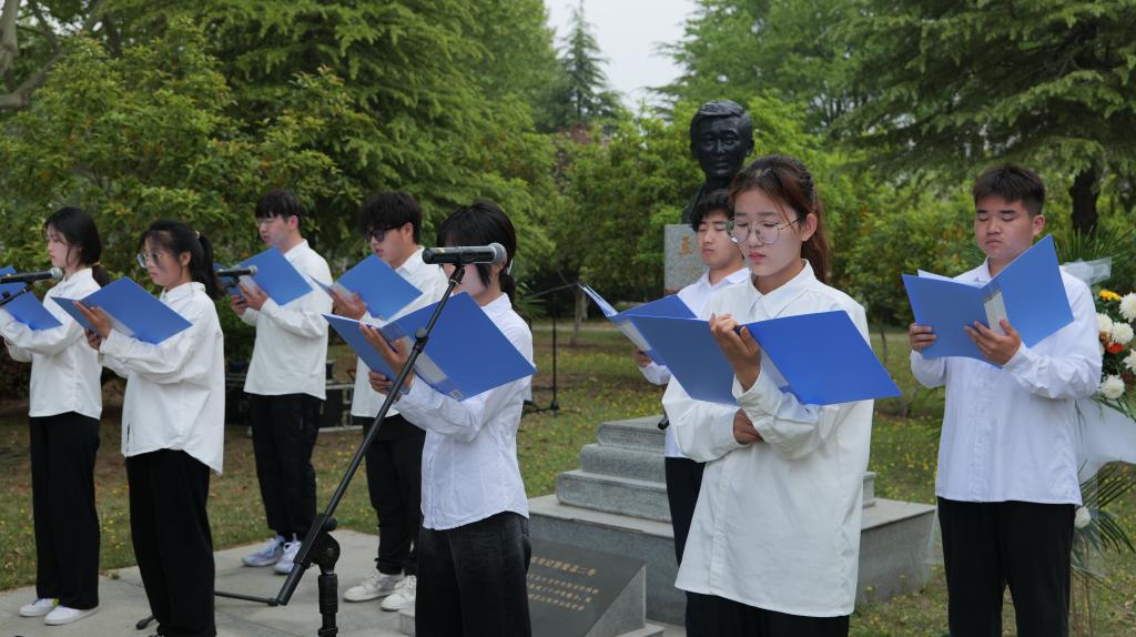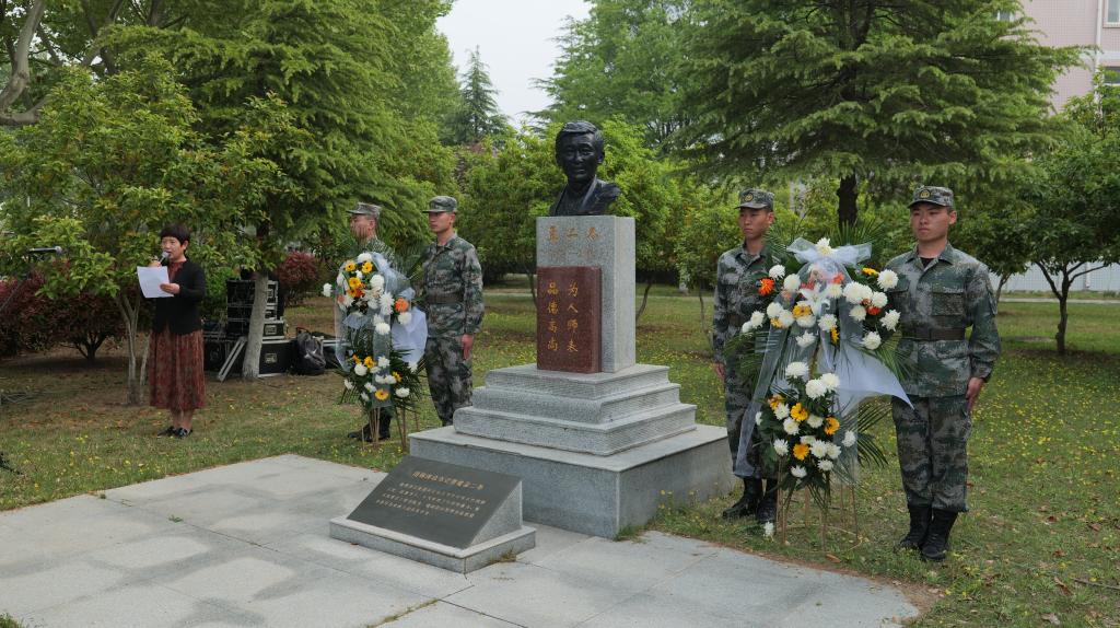 追思会在孟二冬雕像前举行。活动开始,入伍退役学生迈着整齐的步伐向孟二冬雕像敬献花篮,全体师生怀着深厚的敬意和哀思向孟二冬雕像三鞠躬,以示深切缅怀之情。随后,孟二冬精神研究会、孟二冬志愿服务队学生代表集体朗诵了由孟方教授创作的诗歌《你,来到了母校校园》,同学们深情的朗诵热切地表达了我院学子对孟二冬的崇敬之意与怀念之情,彰显了孟二冬教授孜孜以求的奉献精神和行为世范的高尚品质。