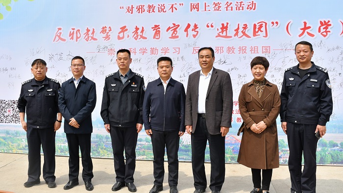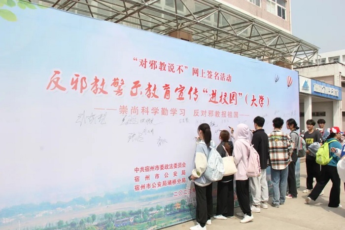 活动期间,通过设置国家安全宣传展板、反邪教知识展板、张贴宣传横幅、播放反邪教视频、发放宣传手册与宣传品的方式,向广大在校师生普及国家安全、反邪教知识并组织学校师生积极关注“中国反邪教”微信公众号。吸引广大师生在反邪教进校园、对邪教说“不”,签名墙上签名,并驻足参观“415”全民国家安全教育日现场展板。
