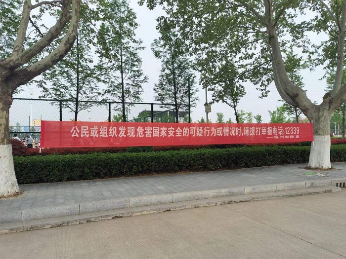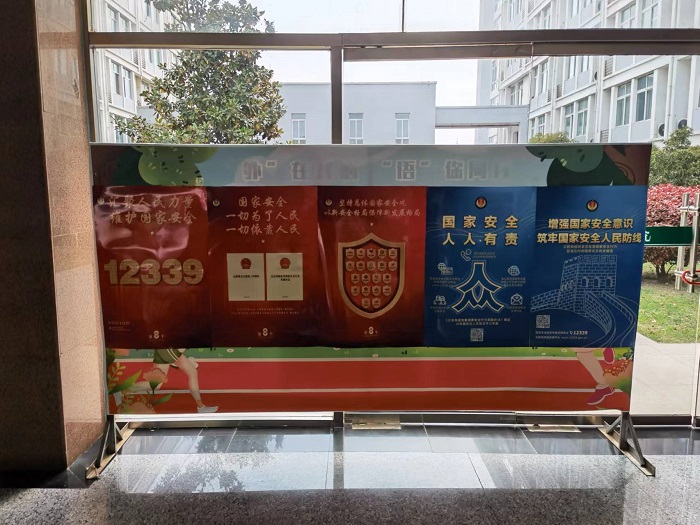 学校在食堂门口、校园主干道两侧有效运用横幅、展板展示、LED电子屏宣传,通过网站、微信公众号推送、QQ班级群转发相关宣传资料,进一步提高了广大师生的法律意识和国家安全意识,营造了浓厚的校园安全氛围,丰富了校园安全文化建设,促进师生践行总体国家安全观,引导师生自觉维护国家安全。