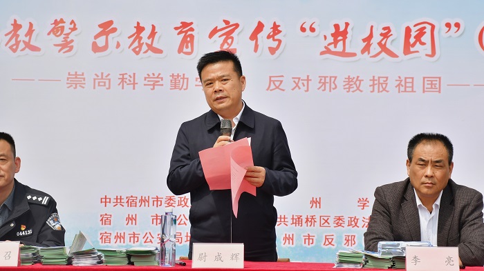 市委政法委副书记尉成辉从维护国家安全观角度,以防范邪教向校园渗透为主要内容,从什么是邪教、邪教的危害、怎样防范邪教三个方面进行深入讲解,并通过新时代“中国之治”创造的“两个奇迹”,引导在校学生崇尚科学勤学习,反对邪教报祖国,不断提升思想道德素质与法治素养,自觉抵制邪教侵害,自觉担当反邪重任。