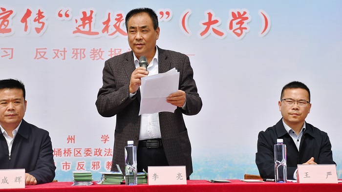 活动现场,党委委员、副校长李亮强调“国家安全是每一个公民的责任和义务,更是每一个大学生的责任和义务”,向大家讲解邪教组织的危害,要求广大师生要时刻牢记国家利益高于一切的观念,主动了解国家安全有关法律法规,提升安全素养,增强国家安全意识;要崇尚科学,时刻保持警惕,防微杜渐,自觉从自身做起,不听、不信、不传,坚决远离邪教、抵制邪教。