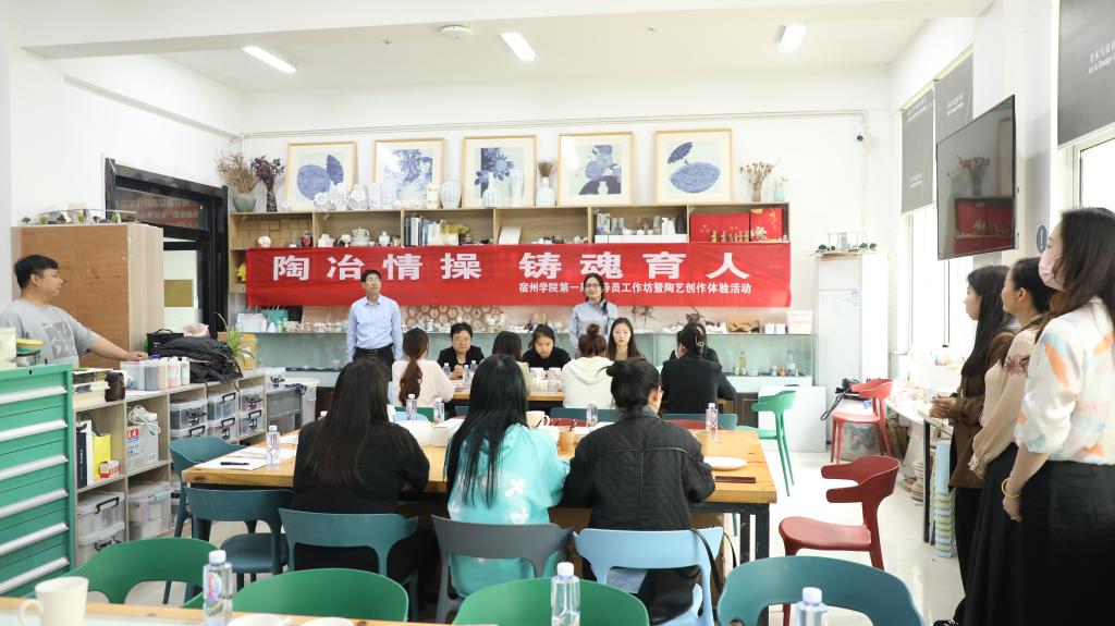 为学习宣传贯彻党的二十大精神,根据学习贯彻习近平新时代中国特色社会主义思想主题教育工作要求,结合我校2023年思想政治工作要点,以“陶冶情操 铸魂育人”为主题的第一届辅导员工作坊暨陶艺创作体验活动,于4月20日下午在美术与设计学院陶瓷艺术创作实验室举办。学工部部长李月云,美术与设计学院党委书记陈述立、副书记(纪委书记)边洪强,各学院辅导员代表,学生代表参加了此次体验活动。