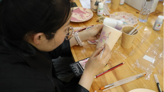 辅导员和学生一起了解陶瓷制作的相关知识,边学边做,通过绘画、题字等设计形式,表达对学习党的二十大精神的体悟。共同体验劳动之美、创意之美、合作之美。不仅开阔了视野,提升了审美感受,而且增进了师生情谊,释放了创造力。
