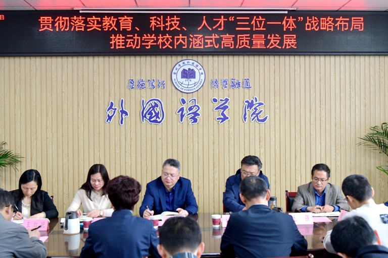 调查研究是我们党的传家宝,是做好各项工作的基本功,大兴调查研究既是对党的优良传统的传承和发扬,也是在新时代新征程推动学校内涵式高质量发展的“谋事之基、成事之道”。近日,院党委副书记、院长李福华深入机械与电子工程学院、外国语学院开展“贯彻落实教育、科技、人才‘三位一体’战略布局,推动学校内涵式高质量发展”主题调查研究。发展规划处、党委教师工作部、教务处、科研处、国际交流与合作处等部门陪同调研,二级学院领导班子及科级干部参加座谈会。