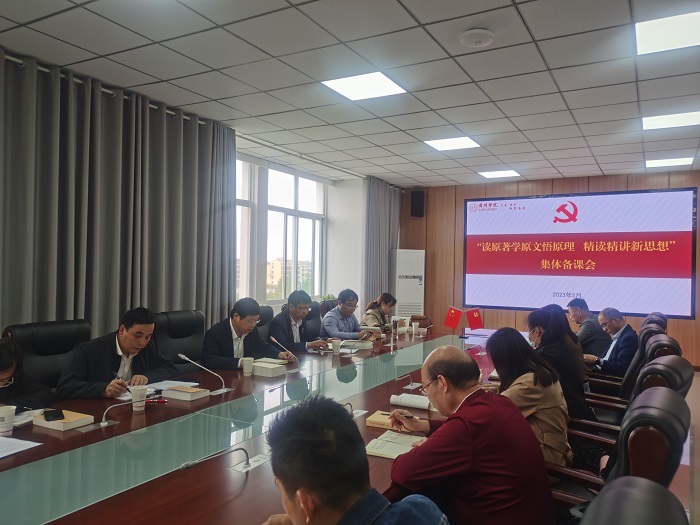 5月10日下午,学院举办“读原著学原文悟原理 精读精讲新思想”集体备课会。校党委委员、纪委书记,监察专员王俊、校主题教育办公室常务副主任、商学院正处级组织员黄凯以及马克思主义学院领学专家组成员等参加备课会。马克思主义学院党委书记、院长刘超主持会议。