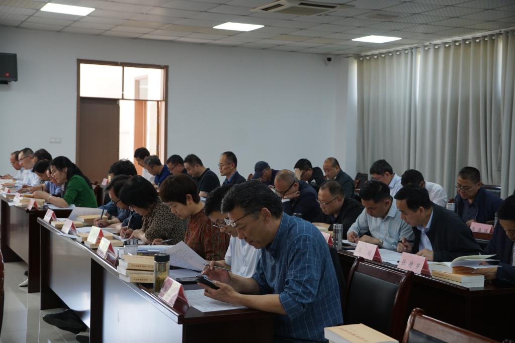 5月12日下午,我校学习贯彻习近平新时代中国特色社会主义思想主题教育校级读书班结业式在逸夫楼第一会议室举行,全体校领导,学校主题教育领导小组人员,各单位、部门主要负责人参加结业式。校党委委员、纪委书记,监察专员王俊主持结业式。