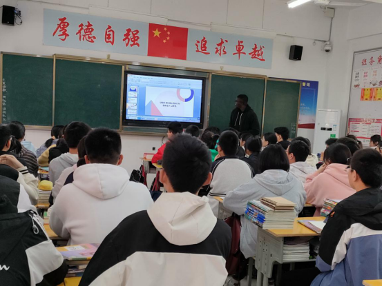 上午,两位外教老师分别在泗县三中高一01/02班和高二01/02班上了两堂英语课。在课堂上,外教老师BIENVENU博士通过形式多样的游戏和学生们互动,由浅入深地帮助孩子们学习新的单词、语句。外教老师HARATYAN博士用纯正地道的英语发音、生动的表情、丰富的肢体语言、循循善诱地引导学生进行口语交际,让学生置身于真正的英语文化氛围中,增加英语学习的趣味性。在对话中,可以看出学生们的学习效果非常好。有趣的课堂激发了学生学习英语的热情和浓厚的兴趣,课堂气氛热烈,同学们发言踊跃。