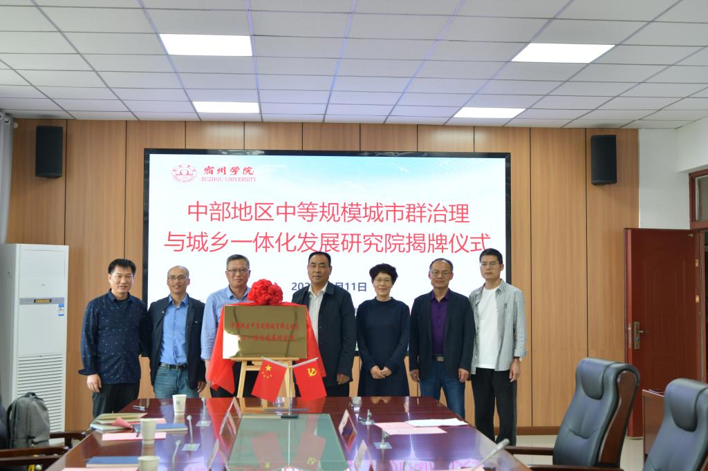 李亮和唐亚林共同为中部地区中等规模城市群治理与城乡一体化发展研究院、复旦大学重点实验室宿州学院研究基地揭牌。