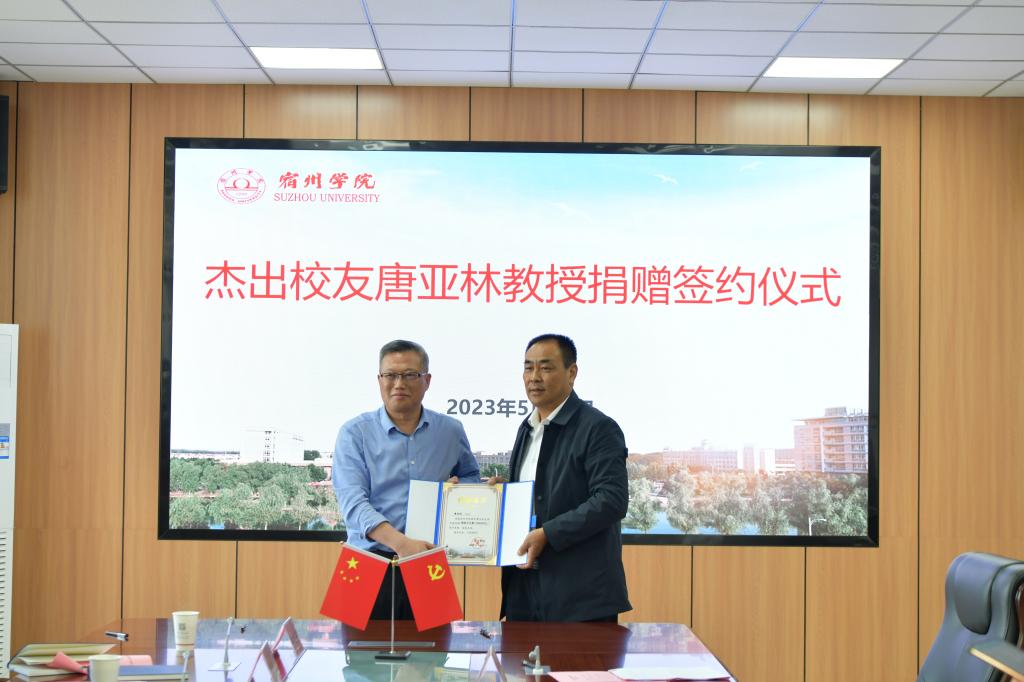 唐亚林首先感谢母校的培养和对捐赠工作的重视。他表示,作为宿州学院毕业的学子,回报母校是自己义不容辞的责任。捐赠“大泽学者”津贴,搭建中部地区中等规模城市群治理与城乡一体化发展研究院、复旦大学重点实验室宿州学院研究基地这样的学术平台,是希望为母校师生提供新的研究起点和新的学术平台。自己今后将继续保持与母校的紧密联系,尽己所能支持母校的建设与发展。