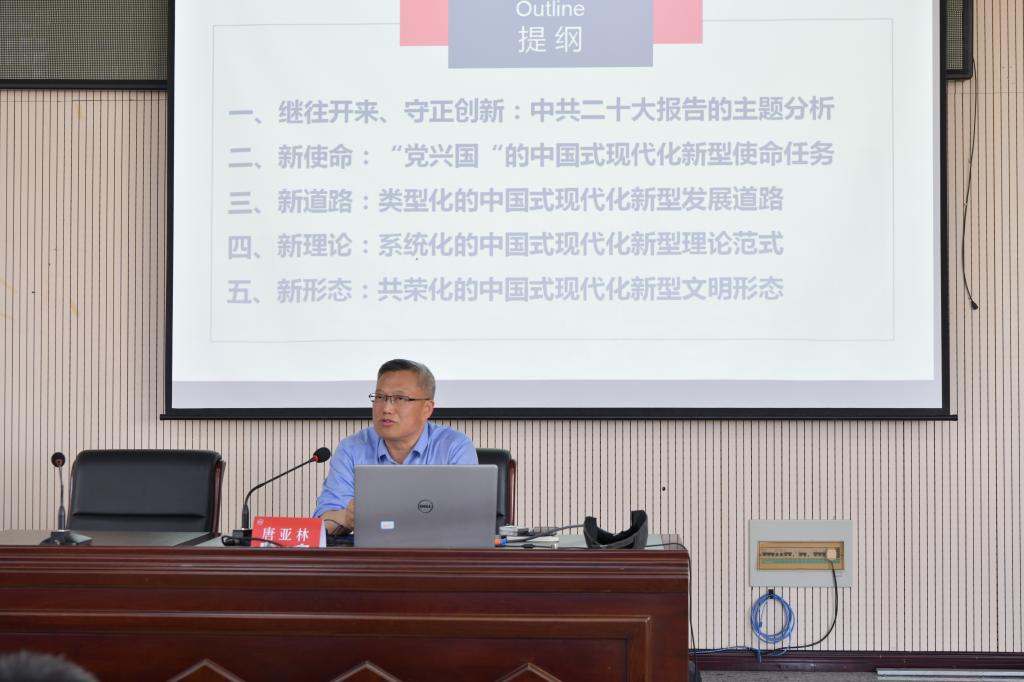 开幕式后,主题论坛拉开帷幕,分两节呈现。第一节由宿州学院张雁凌教授主持。复旦大学唐亚林教授围绕“中国式现代化:新使命、新道路、新理论与新形态”,复旦大学陈水升教授围绕“数字时代的城市治理创新”等主题做出了精彩报告。
