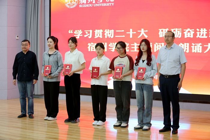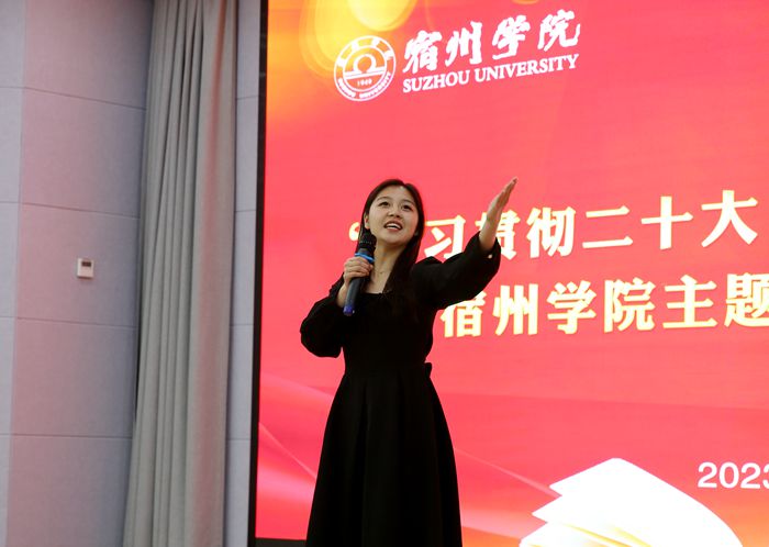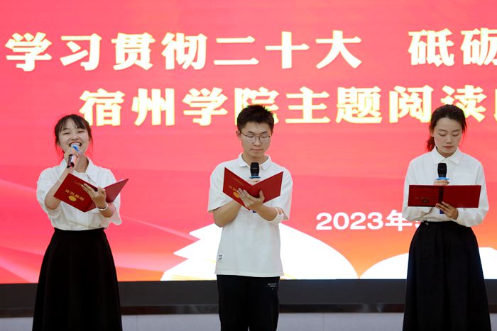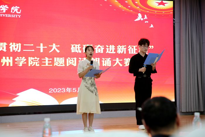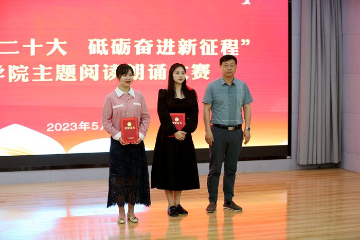 本次比赛是我院学习宣传贯彻党的二十大精神的主题宣传教育重点活动之一,由宣传部、团委主办,文学与传媒学院承办,来自二级学院的11支代表队参加了比赛。比赛现场,选手们精神饱满,围绕“学习贯彻二十大 砥砺奋进新征程”的主题,或集体朗诵,或个人诵读,为现场的师生带来了一场场精彩的视听盛宴。作品《千秋》讲述了建党百年以来,中国共产党带领全国各族人民实现从站起来、富起来到强起来的伟大飞跃。作品《青春华章》,真挚地表达了师生对党和祖国的无限热爱,展现了新时代中国青年的昂扬风貌,抒发了师生接续奋斗、再立新功的决心和信心。“吾辈何其幸,得以炎黄名”“强国有我,请党放心”,铿锵有力的声音,深厚真挚的情感,引起在座观众们的共鸣,赢得台下观众的阵阵掌声。