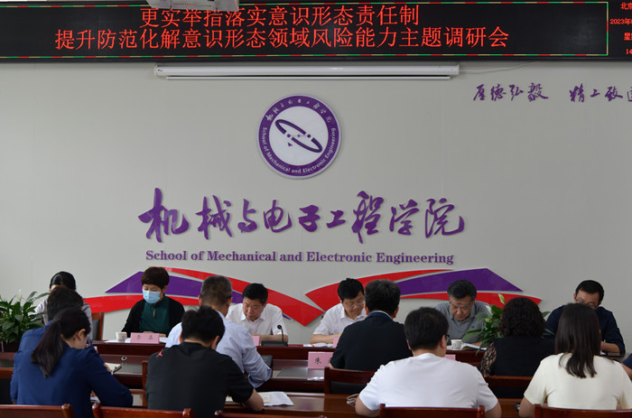 在学习贯彻习近平新时代中国特色社会主义思想主题教育工作会议上,习近平总书记强调:“这次主题教育不划阶段、不分环节,要把理论学习、调查研究、推动发展、检视整改等贯通起来,有机融合、一体推进。”学院认真贯彻落实习近平总书记重要讲话精神及中央、省委、省委教育工委关于在主题教育中深入开展调查研究的决策部署,5月18日至19日,院党委书记汪刘送带队深入二级学院开展意识形态工作专题调研并召开调研座谈会。党委委员、纪委书记、监察专员王俊,党委委员、宣传部部长李真、党委教师工作部部长刘文波、党委学工部部长李月云、党委保卫部副部长张晓聪等部门负责人参加调研。二级学院领导班子成员及科级干部、教研室主任、党支部书记、辅导员代表等参加座谈会。
