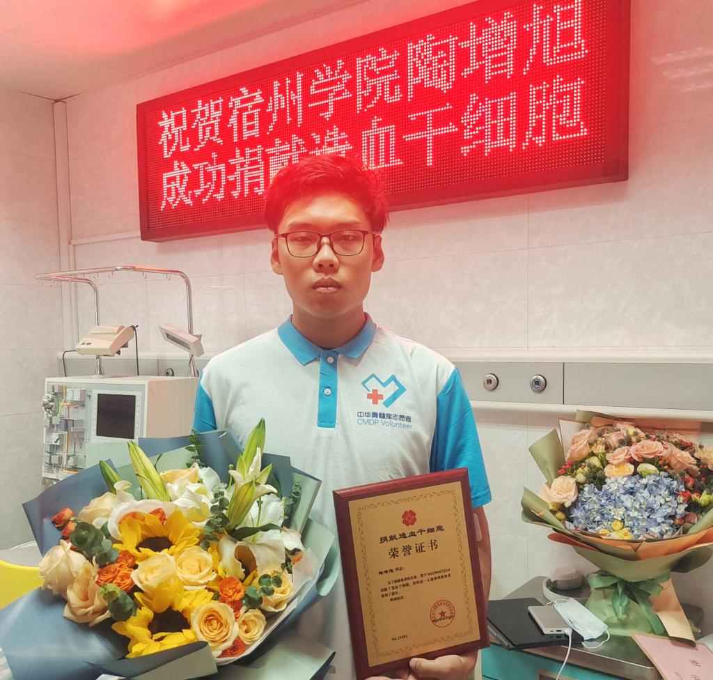 “未曾谋面,我知道,此时你身陷困境。不要慌张,保持冷静,希望就在前面,我会和你一起抗争。一定要相信生命的美好!”5月22日,一封特殊的信件和166毫升造血干细胞混悬液从安徽医科大学第一附属医院紧急送出。宿州学院机械与电子工程学院2020级自动化专业陶增旭同学,在经过约3小时血液采集后,成功捐献了造血干细胞,为一名素不相识的9岁血液病小患者点亮了生命之光。他也成为中华骨髓库第15261例,安徽省第507例,宿州市第35例,宿州学院第8例造血干细胞捐献者。