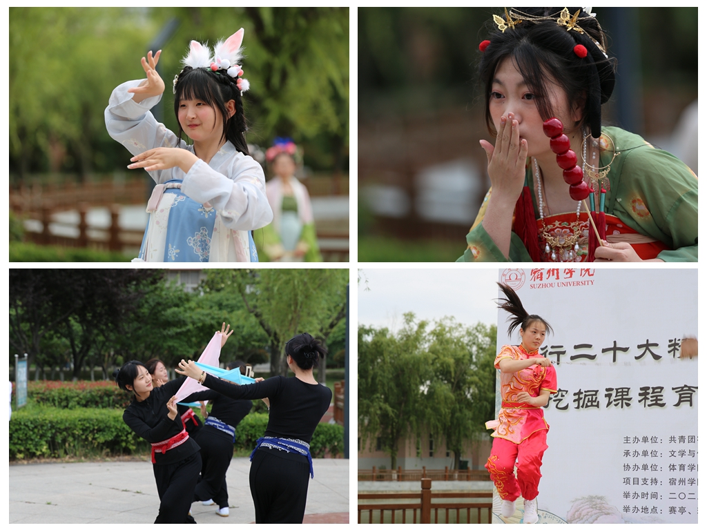 本届民俗文化节以“践行党的二十大精神,弘扬优秀传统文化,挖掘课程育人元素,拓展实践育人平台”为主题,活动分为5个板块,民俗才艺表演、文创市集、民俗美食、民俗书画和民俗活动体验,活动时间为期三天。民俗才艺展示中,汉服舞蹈、泗州戏、太极拳的表演精彩绝伦。文创市集区,文学与传媒学院师生依托宿州学院课程思政示范建设中心和《文化创意与策划》专业实践课程,将传统文化、校园元素、地方特色等呈现在一件件文创产品中,充分展示了课程思政教学效果,增强了学生对中华优秀文化的认同感与归属感。传统民俗体验区让参与者感受到脸谱绘制的艺术魅力,欣赏到泥塑制作的创意,剪纸比赛和跳房子给同学们带来了无穷的乐趣。民俗书画区,同学们围绕主题教育以及525心理健康日等,认真书写创作,一幅幅作品体现了同学们对未来、对国家、对党的无限热爱,一张张水彩画表现了同学们青春的激情、年轻的生命力与创造力。活动期间,同学们的脸上都洋溢着青春的气息,参与活动便可获取相应的奖章参加抽奖环节,激发了同学们参与活动的兴趣,也增强了同学们的体验感和满足感。