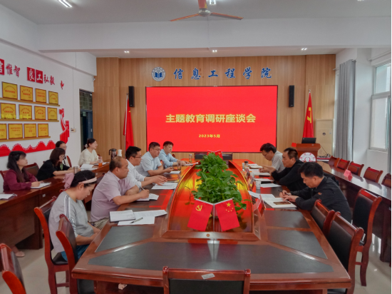 为深入开展学习贯彻习近平新时代中国特色社会主义思想主题教育,5月30日上午,党委委员、副院长李亮带队到信息工程学院开展人才、毕业生就业工作专题调研,党委教师工作部部长刘文波、招生就业处处长杨刚等陪同调研。信息工程学院党委书记余晓永、院长许海峰、正处级组织员黄永刚、党委副书记吴孝银、副院长潘正高以及科级干部、毕业班辅导员等参加调研。