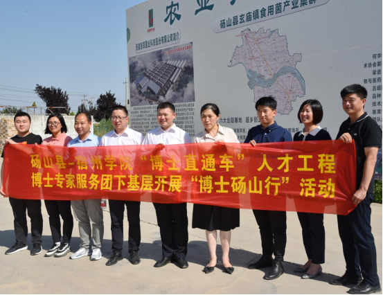 为深入贯彻党的二十大精神,持续推动主题教育走深走实,进一步加强砀山县与宿州学院融合力度,持续推进“博士直通车”人才工程在人才交流培养、技术服务、科技攻关、平台共建、成果转化等方面落地落实,6月8日,砀山县—宿州学院“博士直通车”人才工程“博士成果转化推介会”“博士砀山行”之食用菌项目活动在砀山县成功举办。砀山县政府副县长刘建、副县长(挂职)李琦,宿州学院环境与测绘工程学院党委副书记、院长张海洋出席活动,砀山县相关部门负责同志,我院环境与测绘工程学院相关博士等参加活动。