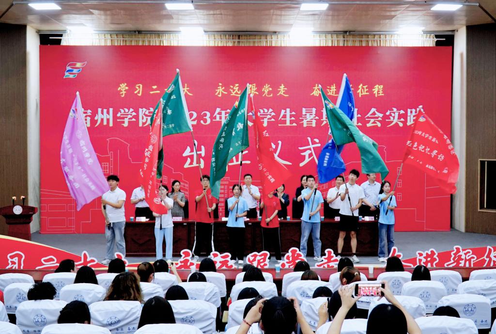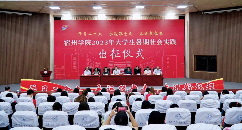 宿州学院2023年大学生暑期“三下乡”社会实践活动由党委组织部、党委宣传部、党委学生工作部、教务处、招生就业处、马克思主义学院和团委共同主办。活动以“学习二十大 永远跟党走 奋进新征程”为主题,组建了193支校、院级重点团队,参与团队实践学生1300余人,分为乡村振兴等9个方面的团队实践和红色记忆寻访行动等4个方面的专项实践。此外,万余名学生还将开展“传习学堂”村务实习、政务体验、企业实习、公益实践等4个方面的个人实践。