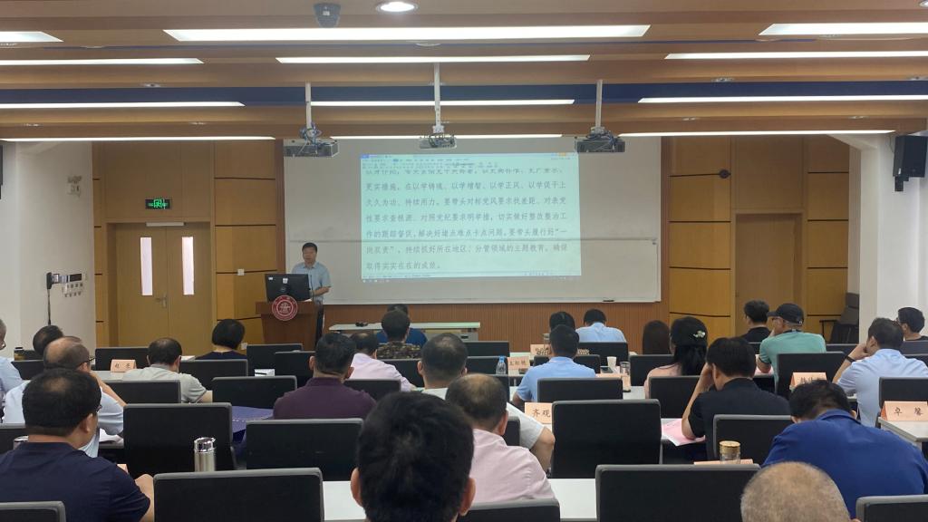 7月7日上午,我院在上海交通大学主办的宿州学院中层干部综合素质能力提升培训班期间,及时跟进学习贯彻省委主题教育工作部署要求,召开了主题教育专题学习会。院领导李亮、王俊、杨维志,职能部门负责人,二级学院党政主要负责人参加会议。会议由党委委员、纪委书记,监察专员王俊主持。