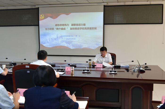 为深入学习贯彻习近平总书记重要讲话指示批示精神,持续推动学习贯彻习近平新时代中国特色社会主义思想主题教育走深走实,8月3日下午,院党委书记李红以《感悟思想伟力、凝聚奋进力量,全力攻坚“两个建成”,加快推进学校高质量发展》为题,在逸夫楼第一会议室讲授主题教育专题党课。学院领导,中层领导人员,党支部书记、教授党员代表、教职工党员代表参加了报告会。