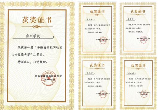 8月17日-20日,第一届安徽省高校实验室安全技能大赛在滁州学院成功举办,我院机械与电子工程学院实习实训中心主任曹吉花、生物与食品工程学院实习实训中心主任张东京、化学化工学院实习实训中心主任张德谨为队员、教务处副处长唐永刚为领队的的代表队在省内39所高校的队伍中脱颖而出,荣获大赛二等奖。