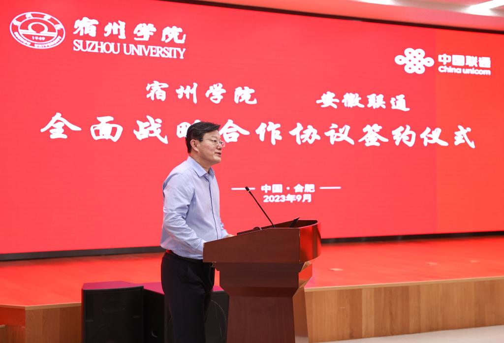 李红介绍了宿州学院基本情况,指出此次签约,是深化产教融合、校企合作、协同育人的生动实践,将为我们办好地方应用型高水平大学注入新活力、增添新动能。双方将共同推动新一代信息技术产业学院、智能网联先进技术与应用中心、实习实训基地、5G智慧校园等共建项目尽快落地。我院将充分发挥科技、人才、智力优势,与安徽联通在人才培养、资源共享、学科共建、项目共申、课题共研、平台共建等方面开展广泛深度合作,加快成果转化,努力打造校企融合高质量发展新典范。