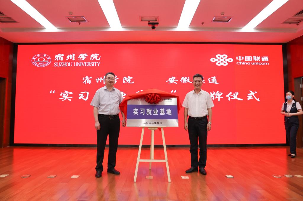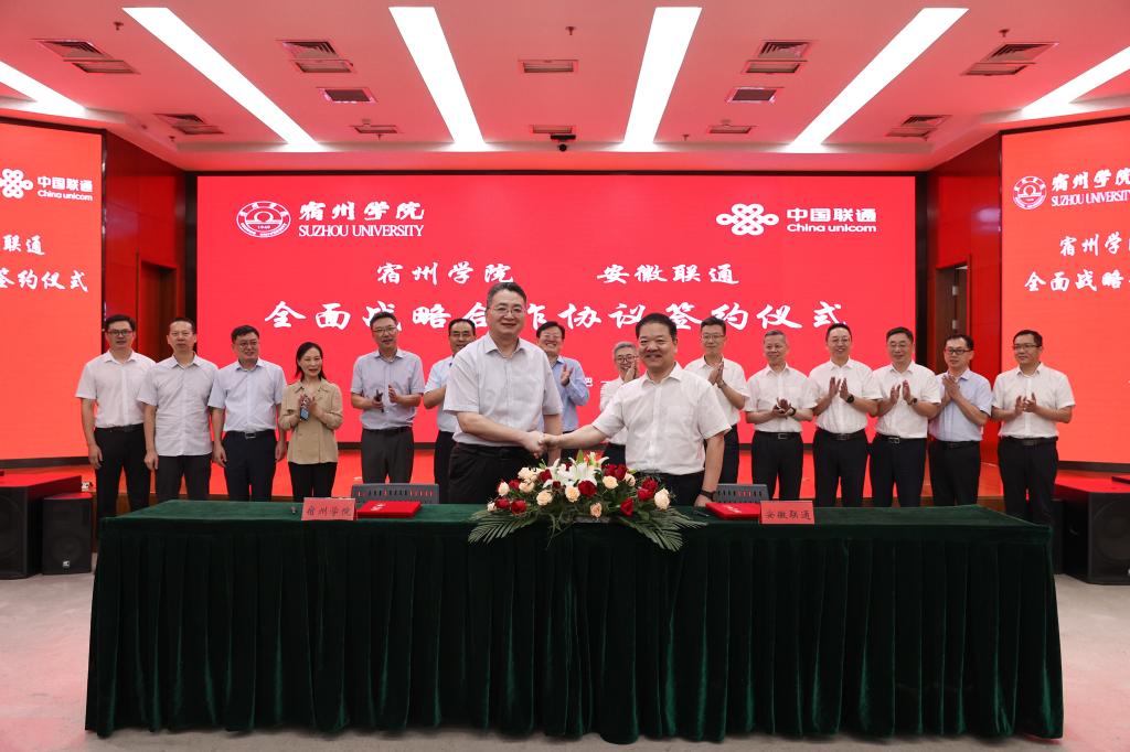 9月1日下午,宿州学院﹒安徽联通战略合作协议签约仪式在合肥举行。我院党委书记李红,党委副书记、院长李福华,党委委员、副院长李亮,以及安徽联通党委书记、总经理韩冰,党委副书记、副总经理陈铭,党委委员、副总经理刘鸿涛等出席了活动。