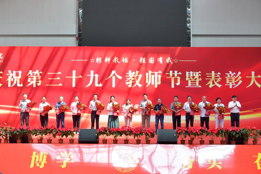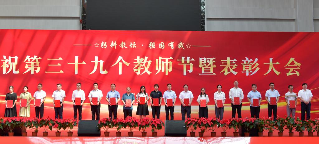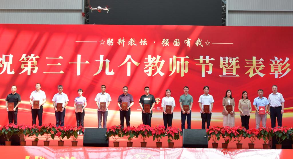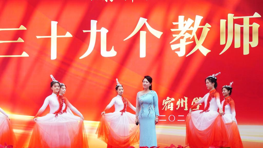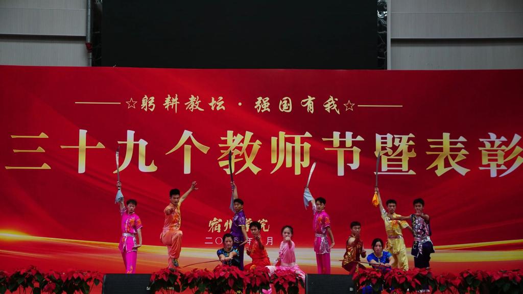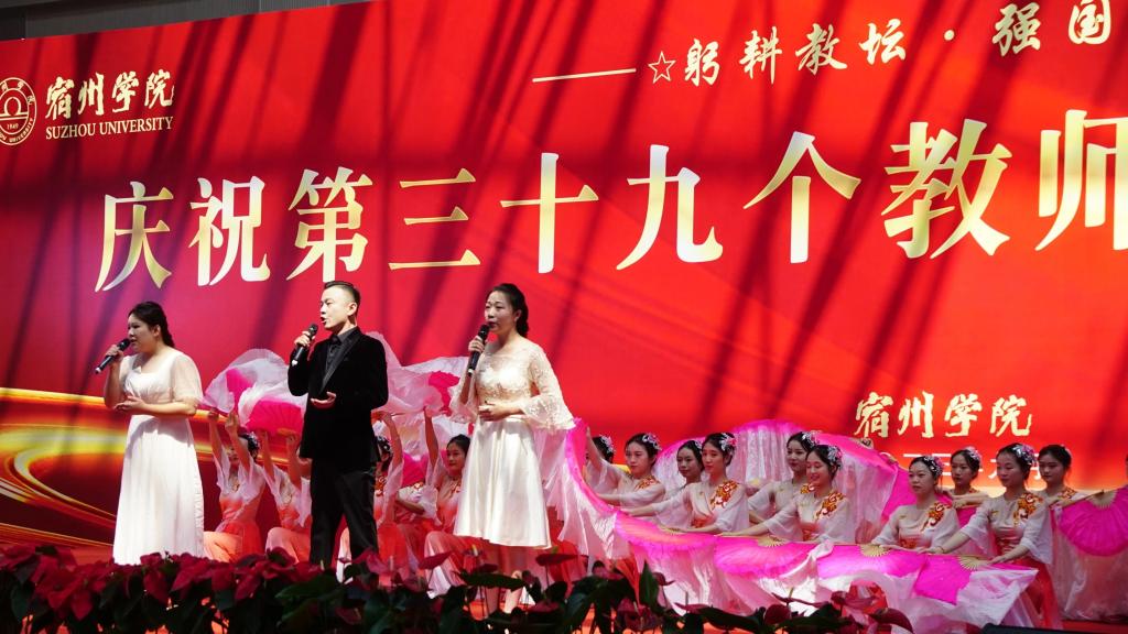 表彰伴随着精彩的文艺演出交替进行。音乐学院和体育学院师生带来的歌曲《芦花》《老师我想你》,乐器合奏《烛光颂》,武术表演《盛世中华》,歌伴舞《花开时节艳梨城》,表达了对老师的无比崇敬、怀念与感激之情。