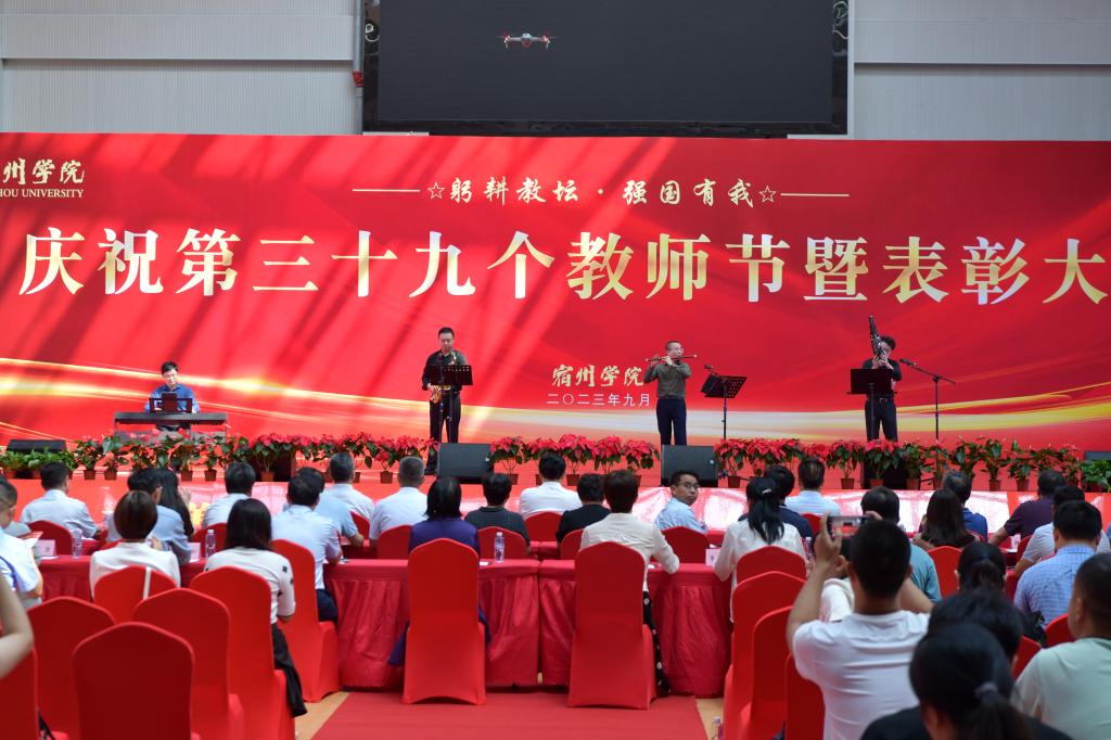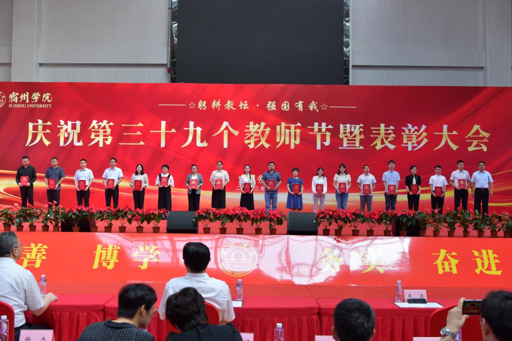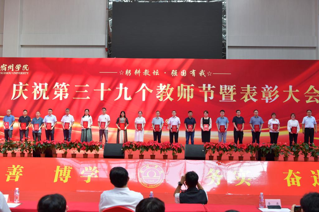 9月8日上午,宿州学院庆祝第39个教师节暨表彰大会在教育园区体育馆举行。院党委书记李红,党委副书记、院长李福华,党委委员、副院长李亮,各职能部门、各二级学院党政负责人,受表彰的127名教师以及师生代表等1400余人参加表彰大会。