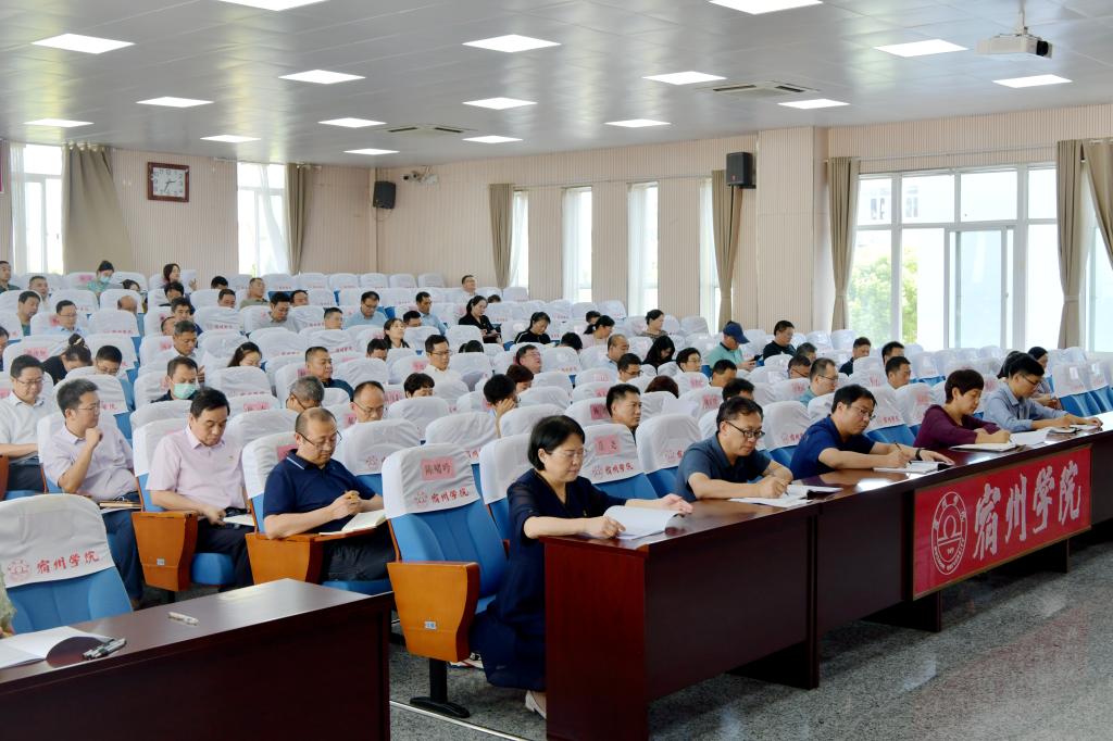 学院党委副书记、院长李福华传达省委第十巡回指导组对宿州学院主题教育开展情况的评估报告。省委第十巡回指导组指出,主题教育开展以来,宿州学院党委认真贯彻落实中央、省委有关部署,紧扣主题主线,按照“学思想、强党性、重实践、建新功”总要求,坚定扛起政治责任,按照“4+1”工作安排整体推进,着力在以学铸魂、以学增智、以学正风、以学促干上下功夫见实效,保证了主题教育扎实有序有效开展。