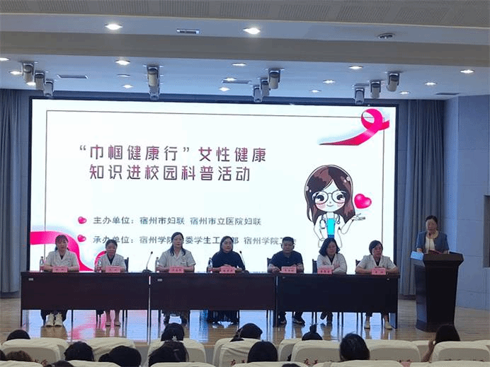 9月13日下午,由宿州市妇联、宿州市市立医院、宿州学院党委学生工作部以及工会联合举办的宿州学院“巾帼健康行”女性健康知识进校园活动如期举行。宿州市妇联副主席陈芳芳、市立医院妇联副主席许温萍以及医生专家团队成员、我院学工部副部长贾学彬和工会女工部部长张倩及全院两百多名师生参加了活动。
