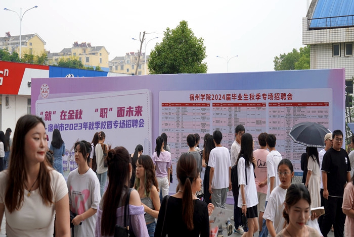 为全力促进毕业生高质量就业,搭建我院学生与用人单位双向选择的平台,9月19日上午,学校在体育馆成功举办芜湖市人社局·宿州市人社局·宿州学院2024届毕业生秋季专场招聘会。