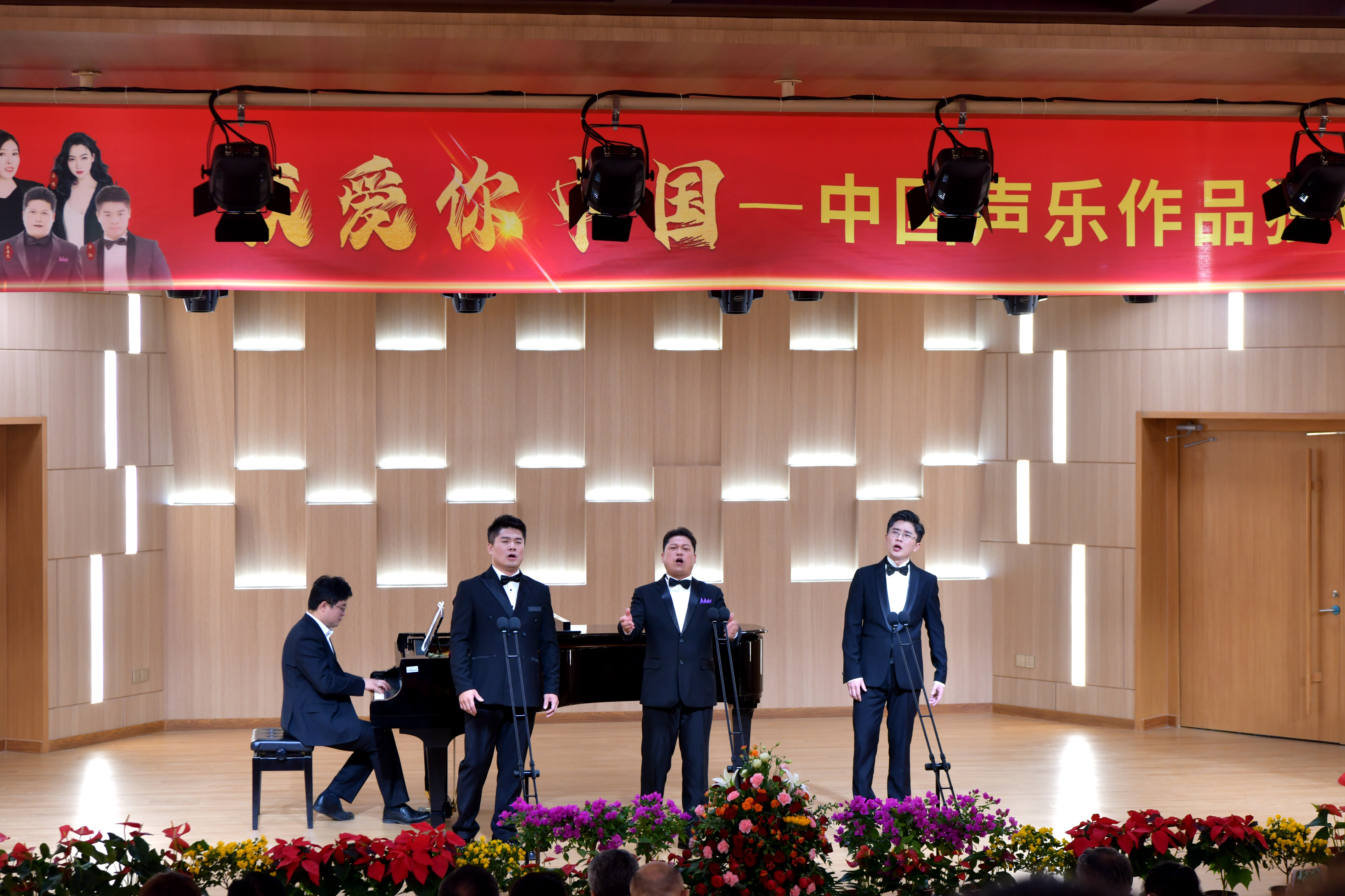 音乐会在节奏舒缓的《七步诗》中拉开帷幕。《菩萨蛮》旋律优美动听,通俗易懂,给观众们带来了美的享受。女声独唱《蝶恋花·答李淑一》歌颂了革命先烈生死不渝的革命情怀。男声三重唱《又见西柏坡》,旋律恢宏厚重,低沉雄浑的歌声中饱含着对革命历史的敬仰,更饱含着对中国未来的憧憬。两首艺术歌曲《歌》《盼》以及《黄鹤楼送孟浩然之广陵》将音乐会推向高潮。接下来,电影插曲《草原之夜》《英雄赞歌》,歌剧选段《我的爱人你可听见》,创作歌曲《大江东去》《我的深情为你守候》等曲目轮番上演。整场音乐会精选了15首耳熟能详的歌曲,既有中国艺术歌曲、歌剧选段、古典词曲、又有经典的创作歌曲,为现场观众献上了一场视听盛宴。演出现场气氛热烈,高潮迭起。最后演员们齐返场,齐声高唱《我爱你,中国》,抒发了全院师生爱国主义情怀。