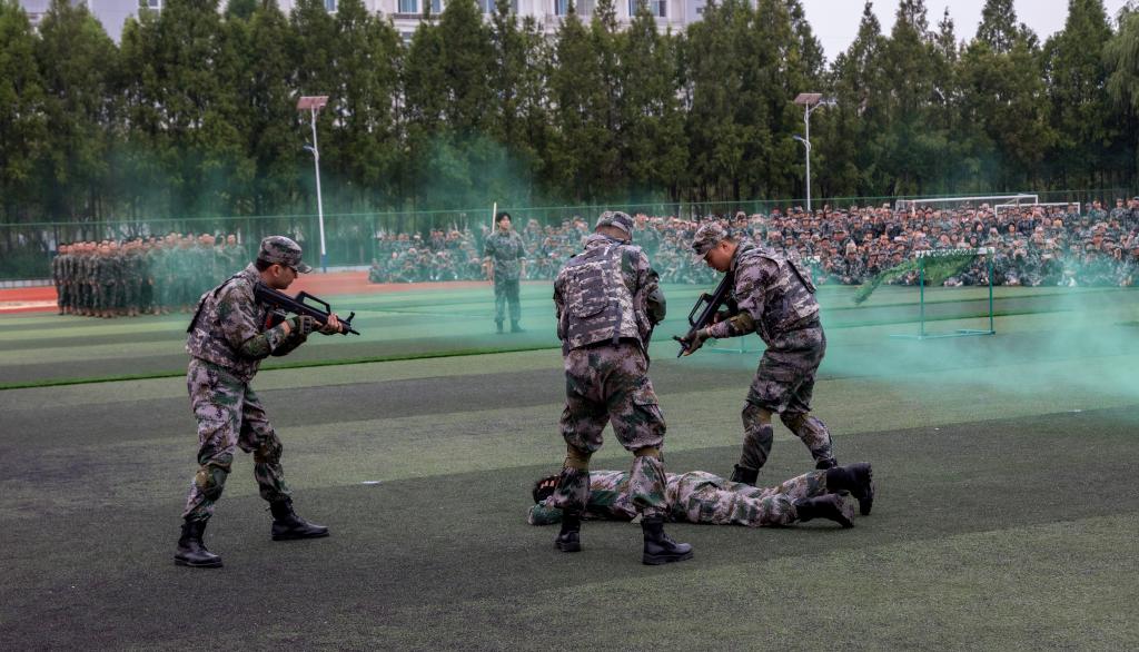 为彰显我院新生风采,检验军训成果,获得军训会操名次的班级向全体师生进行会操表演。他们身姿挺拔,动作整齐划一,展现出宿院学子积极向上的精神面貌,赢得了台下同学们的一致掌声。体育学院体育(2)班向大家展示了武术表演。退伍学生带来了精彩的战术营救表演,迷烟在空气中蔓延,激昂的音乐响起,飒爽的武打格斗动作令同学们赞叹不已。武警教官带来的擒敌术与战术动作表演,尽显战士豪迈。