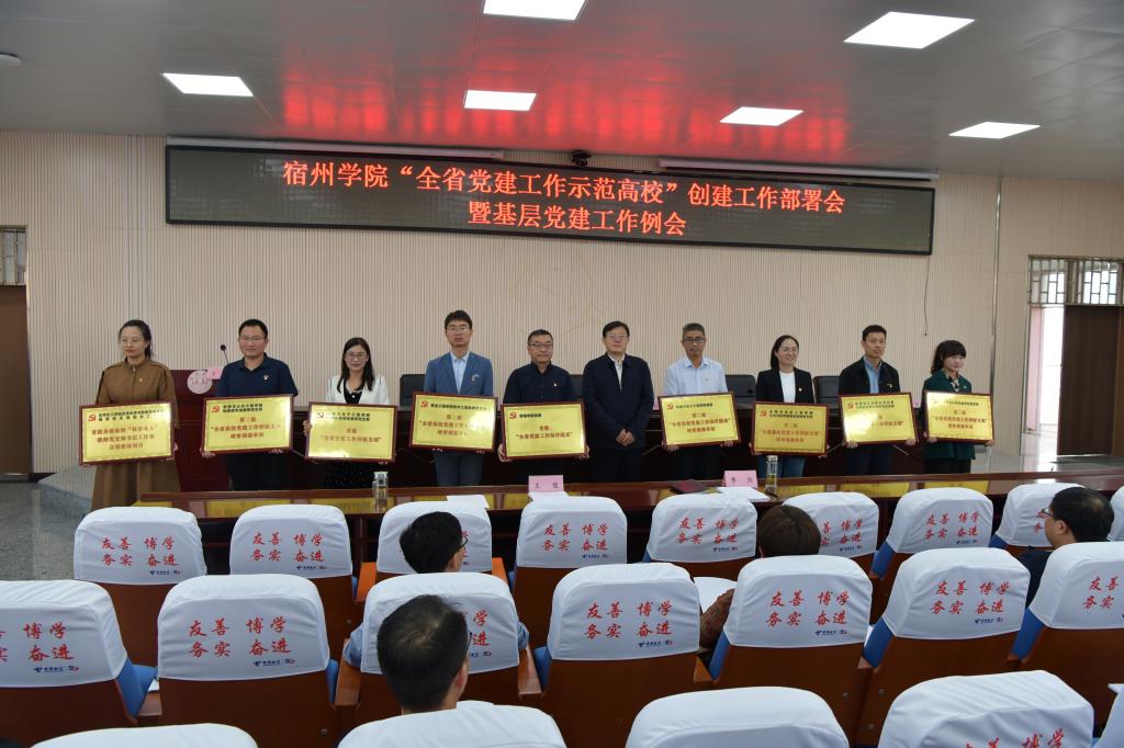 李红为首批和第二批省级党建“双创”项目、省级“双带头人”教师党支部书记工作室项目立项建设单位进行校内授牌,向受到表彰的先进集体表示祝贺。